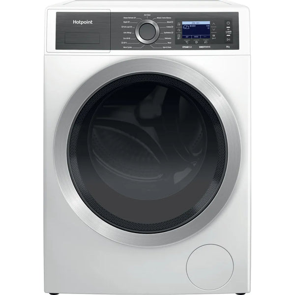 Discover a washing machine thoughtfully designed to deliver powerful cleaning results. The Hotpoint H7 89 GPOWER UK Washing machine boasts an authentic design and a 8kg drum capacity. GentlePower technology delivers our ultimate fabric care whilst optimising energy and water consumption to maximise every last drop. Powerful performance can still be gentle on your energy use and your wardrobe. Rated A class for both energy & noise, this washing machine is ideal for any household and uses 30%* less energy compared to other A rated models. With a host of energy and water-saving solutions, the AutoDose function takes care of the amount of detergent used, dispatching the perfect amount of detergent for every cycle so you can wash around a months worth of laundry without the need to re-fill, saving you time and money. The innovative Direct Drive motor replaces the traditional belt driven motor with high-performance direct drive motor that rotates the drum directly, offering quality, reliability and minimum noise levels. Plus when all you need is silence at home the extra silent cycle, takes care of laundry, at any time of the day. Operating as low as 72dB for the whole cycle, which is as quiet as a normal conversation. For added versatility, discover the power of steam and achieve ultimate cleaning results and peace of mind, Steam 3.0 technologies provide ultimate cleaning results with three options to choose from. The Steam Hygiene cycle reduces bacteria thanks to a prolonged high temperature; the 20-minute Steam Refresh cycle refreshes clothes without washing; and finally, the Steam Finish option keeps your laundry soft and crease-free, for up to 6 hours after the end of the cycle. *On use of the Eco 40-60 cycle and compared to the minimum required to be considered A class. Validated by internal tests.