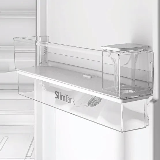 This Hotpoint freestanding 50/50 fridge freezer in dark silver features thoughtful technology that keeps your food fresh and prevents waste. With a spacious capacity of 270L, it provides ample space for 15 shopping bags, so you can easily fit all your groceries in. Our clever No Frost technology ensures a constant airflow inside the freezer, so you'll never have the dreaded chore of defrosting it. Inside you'll find a dedicated Fresh Zone drawer, which maintains the correct temperature for crisp salad and long-lasting vegetables, while adjustable shelves give added flexibility to accommodate larger items effortlessly. Bright LED lighting illuminates the interior of your fridge so you can see everything clearly, and the reversible door design lets you position it perfectly in your space. Outside, the integrated water dispenser lets you quench your thirst instantly with quick and easy access to chilled water.