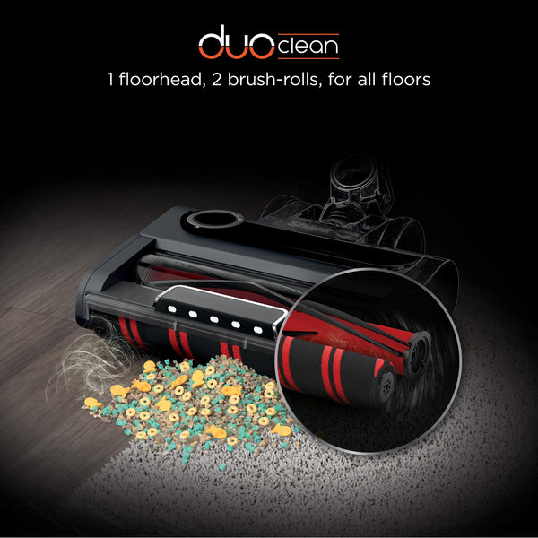 Shark’s signature DuoClean floorhead glides from carpets to hard floors using two motorised brush rolls working together for a thorough clean. It includes their best-ever hair pick-up technology – Anti Hair Wrap Plus –removing long, short, and pet hair as you clean.